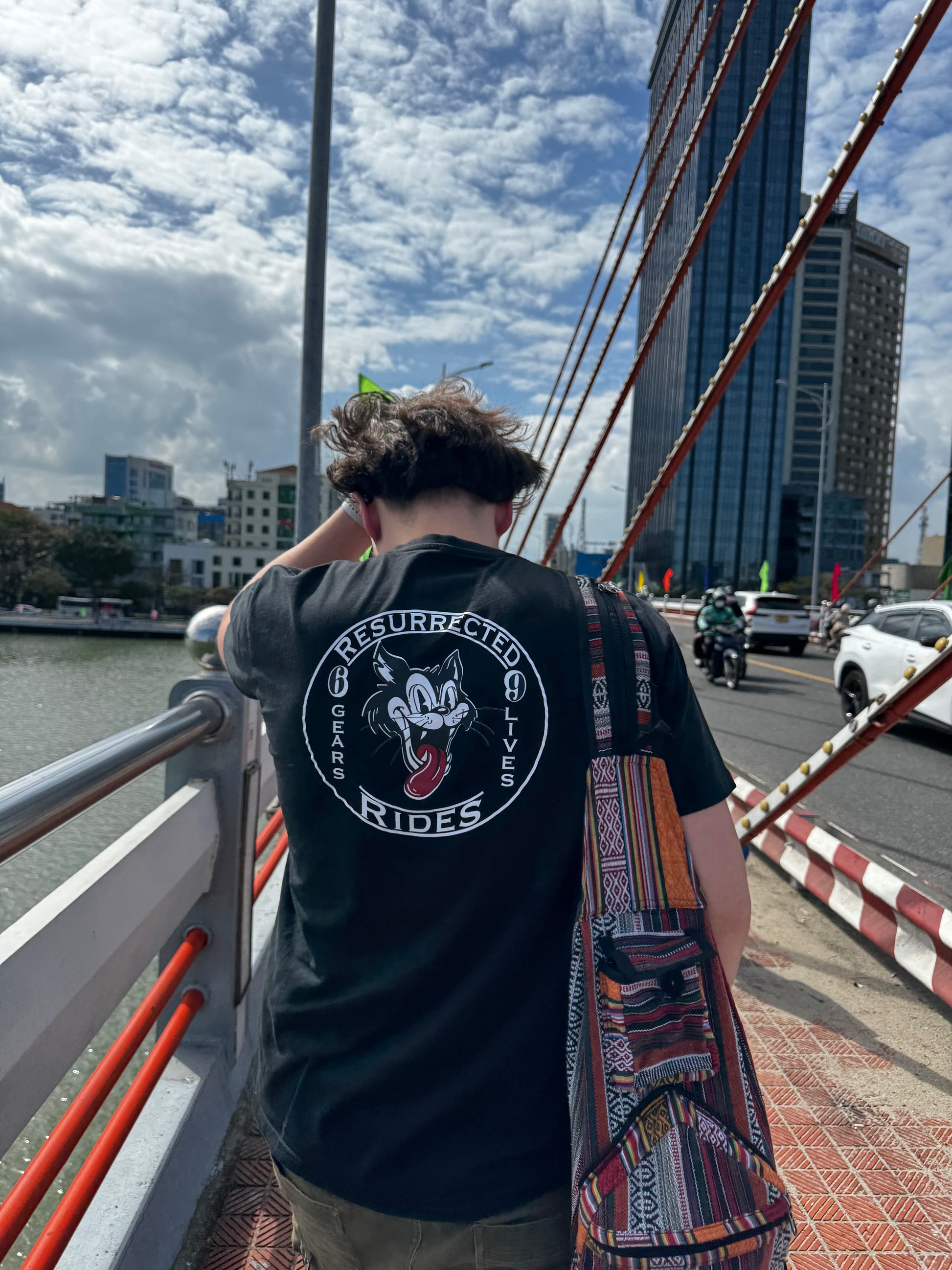 The OG greaser line design. This is Resurrected Rides most successful garment design, inspired but the early Americana drag race era.